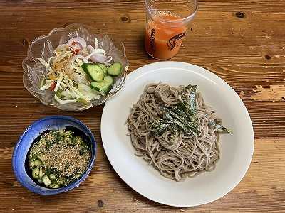 冷たい麺でざる蕎麦です。たれには、わさび、刻みオクラ、ネギ、胡麻を入れました。サラダ(キャベツ、赤玉ねぎ、胡瓜)野菜ジュース昨日は、行商の魚屋さんが来たのでキトキトの(新鮮な)豆鰺を購入刺身を作りましたが、次女から「なめろうを作って美味しかった」と画像が送られてきました。急遽、私も少しだけなめろうを作りました。ポチッとお願いします。