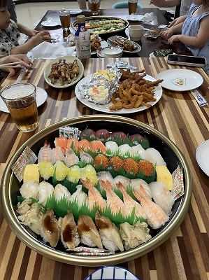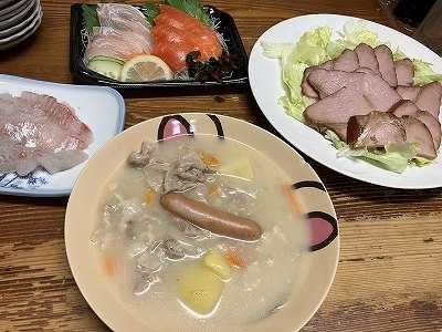 昨日は、火曜日恒例の食事会長男が1月間の長期出張中なので、長男嫁、孫2人、長女一家を呼んで食事会を週一でやっています。皆のリクエストでクリームシチュー焼き豚と刺し身刺身は、サーモンと平目。行商の魚屋さんから買った鯛の刺身ポチッとお願いします。 ようやく真夏日が終わりました。明日には最高気温が30度になるとの予報