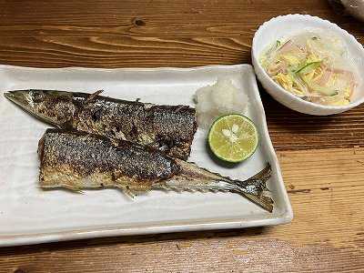 昨日の晩御飯は、久しぶりの秋刀魚の塩焼き生秋刀魚が1尾250円と安かったので購入。今年の秋刀魚はここ数年に比べて大きいのが嬉しい。大根おろしと頂き物のスダチを添えました。春雨サラダは、ふと食べたくなって作ったけど、美味しかった。具は、ハム、錦糸卵、胡瓜です。今朝も早朝から家庭菜園へ。秋冬野菜地を作るために耕運機仕事。有機石灰をふって耕して溝上げ。汗だくになりました。お昼ご飯は、ラーメンサッポロ一番の塩ラーメン。「すだち香る和だし仕上げ」というものです。確かに、ほんのりすだちの香りがします。溶き玉子で仕上げました。ラ王の豚骨醤油です。ポチッとお願いします。
