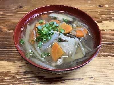 昨日の週一孫ちゃん達との晩御飯は、餃子と豚汁でした。写真を撮り忘れたので朝食べた豚汁の画像です。我が家の豚汁の具は、豚肉、ごぼう、人参、椎茸、もやし、こんにゃくです。私のこれがなくてはならないマスト食材は、椎茸です。いも類が入る家も多いと思いますが、うちは反対する人がいて入りません。世間では、里芋派、さつまいも派、じゃがいも派がいるのかな。ポチッとお願いします。