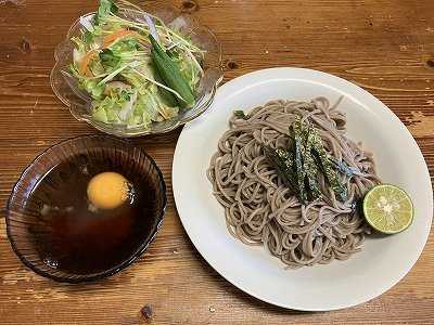 最近、ざる蕎麦が多いので、久しぶりに釜玉そばにしました。卵を溶いたところに茹でたてのそばを絡めます。麺つゆを回しかけ、ねぎと一味をふります。味変にすだち稲荷寿司コールスローサラダポチッとお願いします。 国交省が来夏の土木工事に1~2か月程度の夏季休工を施行するとのこと今年の真夏の暑さからしたら必要な対策かもしれませんね。真夏のコシヒカリの稲刈りも大変なので農家も品種を変える必要があるかも。