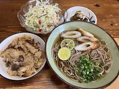 久しぶりに炊き込みご飯を炊きました。朝ご飯に食べたけど、昼も炊き込みご飯です。汁物の代わりに、冷たい蕎麦です。汁物の代わりと言いながら量が多かったのでご飯を減らした。キャベツと胡瓜のコールスローサラダポチッとお願いします。 今日は、孫3(長女の長女)の1歳の誕生日靴を履いての外歩きデビューも果たして、目が離せなくなっています。顔を見れば泣いていたのが数日前からようやく馴染んでくれた様子。孫3人の通うこども園では、今日が祖父母参観日。仕事だけど途中で抜けていけるかな、無理かな。