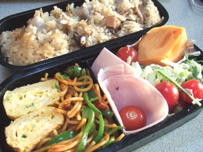 おかずは、葱入り玉子焼き、ナポリタン(自家冷)、ハム入りキャベツのコールスローサラダ