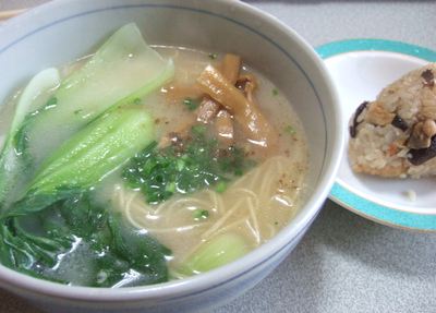 腰の強い麺とあっさりしたタンメン風の麺。麺は油で揚げずに乾燥させたもの。