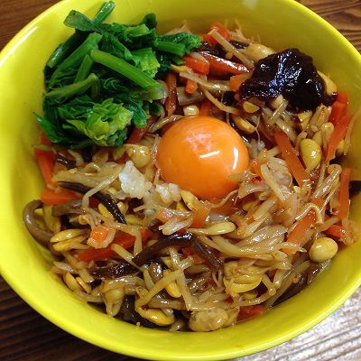 今日のお昼は、ビビンバ丼(ビビンバもやしという商品があってK点を超えていたので)