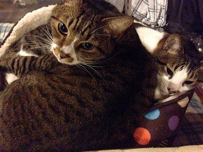 朝目覚めると枕元で気配がしたので見てみると、一つベットでにゃんこ兄弟が目覚めていました。