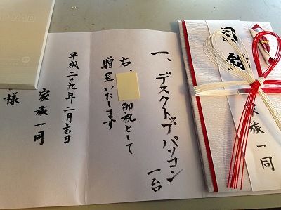 なんと、そのお祝いの目録をもらいました。(現物は実家に隠しているそう)