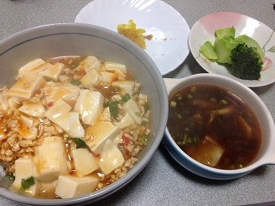 麻婆豆腐は、鶏胸肉を冷蔵庫で自然解凍して自分で細かくみじん切り