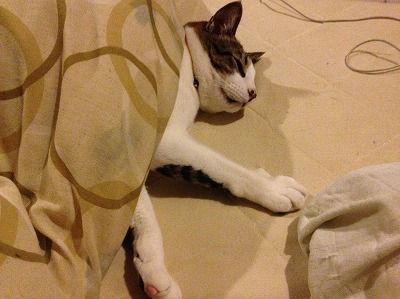 今日のにゃんこ写真は、奥さんの布団に入って眠るきなこ