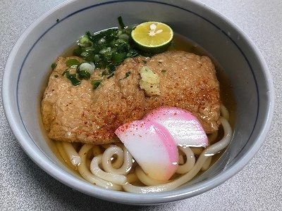 お昼ご飯は、油揚げを2枚の乗せたダブルきつねうどん
