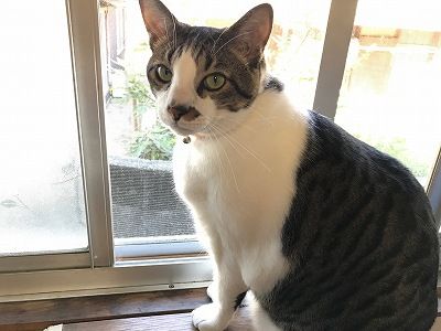 窓際で振り返るきなこ