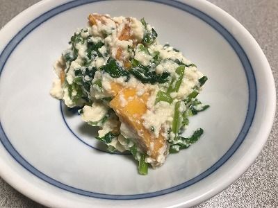 久しぶりに作った白和え。今回は、大根葉と柿の白和えです。
