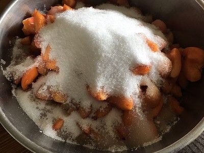 生のあんず1.5キロに今回は40パーセントのグラニュー糖で400グラム