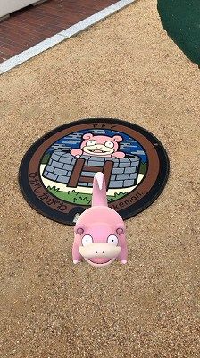 今回は、ヤドンマンホールだとか。早速、行って手持ちのヤドンを出してマンホール一緒にパチリ