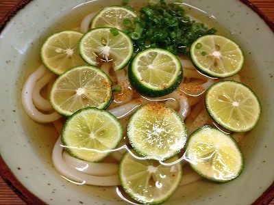 今日のお昼ご飯は、家うどん。酢橘うどんです。