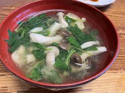 モロヘイヤが育ってきたので、茹でて粗くきざんで味噌汁に入れました。