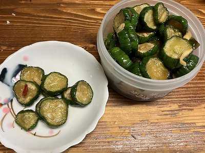 家庭菜園の胡瓜が沢山あるので、胡瓜のキューちゃんならぬ干し胡瓜のパリパリ漬けを作りました。
