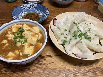 仕方ないので温まるメニューで、麻婆豆腐と水餃子にしました。