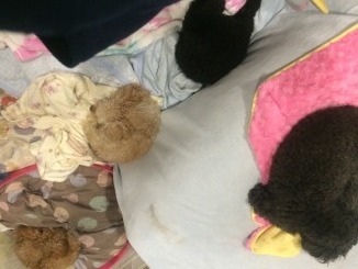 今日は 昨日の疲れがいえいえここ数日の疲れがたまってとうとう寝坊してしまいました。もう 無理の利かないお年頃なのででも お弁当作りに間に合う時間に美海がちゃんと起こしてくれました。今日は なんか ゆっくり寝れると 思いながらIPhonの目覚ましまで切っちゃった私は6:00まで ねて 寝坊4:50に起きる予定だったんです。美海がちょんちょんと起してくれました。起された時は 又だ~~と思いながら4階へ連れていきTVを付けると え!6:05あ! 美海が起してくれたんだーもう感謝でした。今日の体重 苺 720g ニコちゃん 780g 珊瑚 900g昨日 ニコちゃんが知らない間に 布団に入っていました。美海と一緒に寝ていることに びっくりです。せっかく買ってあげた ベットも布団に変身 美海は お乳をあげたくないようなので抱っこして お乳を触ってみると なんと下のほうが固く固まってしまっていた。パパと交互に マッサージそれが終わって お風呂に入れて飲み足りない子に 無理やり吸わせて お乳が柔らかくなると進んで 子犬たちのところに入っていきました。子犬の口の痛さと お乳が張ってしまう痛さでどうしても嫌になっていたんですね。犬も マッサージが時には 必要かも下の写真↓お乳が 痛くて嫌がるときは無理やり飲ませます。そうしないと もっと痛くなるから。