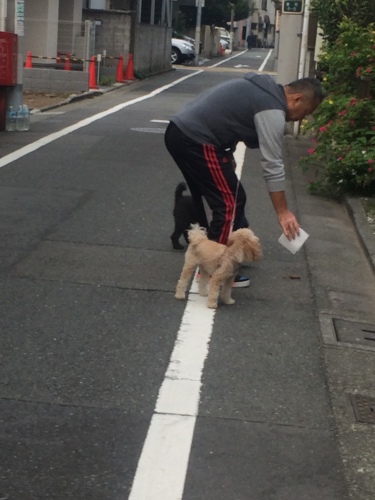 火曜日は 主人が釣り朝 私が1人で 2匹づつ 2回のお散歩子どもの組で 動画撮影をしました。ちょっとだけ踏切のところで 興奮する空動じない美海2匹は つながっているので 引っ張り合いの様子です。親のジャックと杏の方は もう撮影無理2回目は 汗だくの散歩杏は 早く帰りたい方なので半分で切り上げ~~~~~(ーー;)そのあと お義母さんの デイサービスがあったはずなんですが連絡の取り合いがうまくいかずで すったもんだして私の仕事が午前中にあるのに・・主人には 連絡付かずちょうどいた 息子ちゃんにヘルプを頼みどうにか切り抜けて 午後から 姉のお見舞いです。お義母さんを連れて 車いすで病院へ行きます。先ずは 腹ごしらえこの間 主人と行った九十九っていうラーメン屋さんへここの おいしかったし 珍しかったので息子とお義母さんにも食べさせたかった。それでお義母さんと 息子を連れて息子の感想こんな替わったもの作ったのに普通のらーめんもおいしかったって普通に言え!!!!! おいしかったと・・・そして 病院へ お見舞い姉は とっても元気でした。体中の管という管が全部取れて 座って 話すこともできます。良かった もう大丈夫です。病院は 飯田橋です。お墓参りまで そんなに遠くないのですが今回は 午前中のごたごたで 疲れてしまい次回に伸ばしてしまいました。とりあえず 飯田橋まで来たんだからお土産 ペコちゃんのどら焼きとペコちゃんのシュークリームとペコちゃんの ロールケーキ写真は どら焼きのみお義母さんは 認知症で もう頭の中が幼稚園生になってしまっているので電車の中でこの ペコちゃんシリーズを持ってもらうとなかをのぞいたりしおりを出して 私にくれたり箱を 空けようとするので「これは 人にあげるものなので 開けてはだめですよ」と言いながら帰ってきました。家に帰ると 釣りから帰ってきた主人がもうベットの中釣りは 楽しかったようでヒラメが 3kgが 5枚アイナメ 1枚 の成果でした。