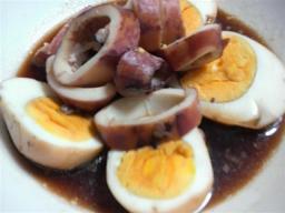 5.いかの胴を輪切りにし、卵は半分に切って盛り付ける