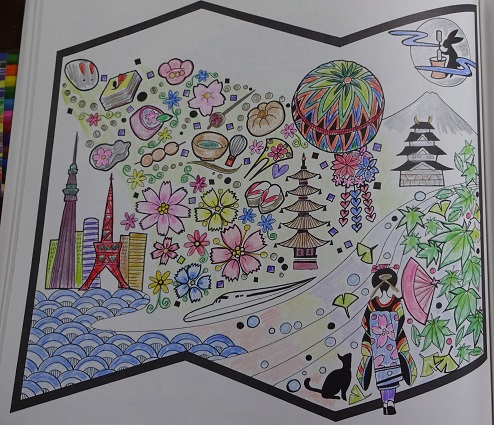 9月17日(土)最高気温29℃朝晩涼しくなり秋を感じる季節になりました。季節の中で一番好きな季節ですけど涼しくなるのと同時に心が寂しくも感じます。秋は ぶどう・梨・サツマイモ・松茸・秋刀魚・新米など秋を連想させる食材が多いですけど秋の食べ物と聞くと何を思い浮かべますか?私は「秋刀魚」かな(#^^#)大人の塗り絵「JAPAN」編です。
