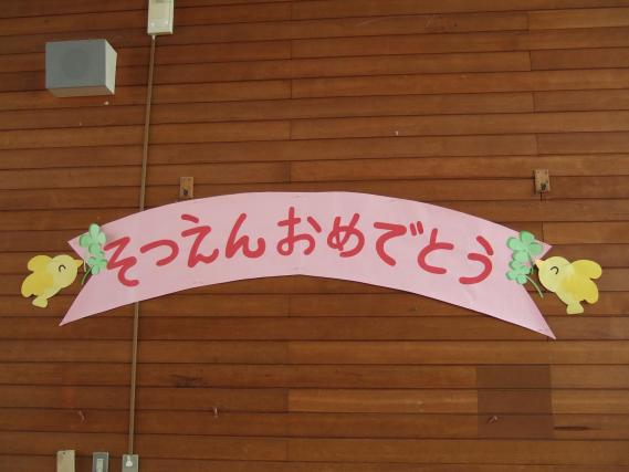 やっぱり今日もイロイロあった職場ですが話は・・・ 卒園式ですよねw(。ゝ(ェ)・)b 前日の雨もあがり心配していたインフルエンザのお休みもなく全員参加して迎えた 卒園式うちは祖父母宅に泊まっていたので朝はゆっくり出かける事が出来ましたw 前日 祖母に保育園のお迎えを頼んだんですがその時に保育園の副園長に是非見に来てあげてって言われたらしく上の子の時には参加しなかったけど初めて参加しました^^出かける時は服何したらいい? なんて聞く始末w 家族写真があるから早めに行って順番に撮影してもらいました^^ その後に集合写真^^人数が多いとナカナカシャッターチャンスに恵まれず何回撮るの?ってくらいパシャパシャwwwそれぞれがいいって思う写真になったかしら??? 時間になって保護者席についたら・・・もうσ(・ω・。)ダメダメモード^^; 先生が始まりのあいさつをして子どもたちが入場して来たらウルウル・・・ 卒園証書を受け取る時にはひとりひとりが小学校の名前を言って将来の夢を話して受け取りに・・・ 他の子のを見てても大きくなったなぁ~って感動して自分の子になったら また感動・・・ 下のクラスの子がお祝いの言葉を言ってそれに返事をしてって掛け合いの言葉だったんですが長文もすらすらと言えてて 成長したなぁ~ってまたも感動・・・ でもね下のクラスの子たちの話し方がだんだんロボット調になってきて涙へっこんじゃったw来賓の方もクスクス笑ってるし^^ その後に園長先生の話や来賓の方のお話は何ともなく聞いていたんですが担任の先生のお話には またウルウル・・・ そのウルウル状態で親の出番www 誕生日順に並んでてσ(・ω・。)は最初の方なので大丈夫かなぁ~?って思ってたんですが歌を歌って間奏の時にひとりひとりが子どもに問いかけを始めると・・・σ(・ω・。) 涙腺緩みっぱなしwwwとどめは 左隣のお母さん「〇〇・・・&%$#◎★¥@◆〒☆♭¥・・・」崩れちゃいましたwww決定打貰ってのσ(・ω・;)・・・自分の子どもの名前を言うまでに時間がかかりその後の言葉を言うにも感極まっちゃって時間がかかり・・・もう総崩れwwwその波は 右隣のお母さんにも伝染しこのまま続くかな?って思ったらそこで立ち消えて・・・後のお母さんはちょっとの泣き声で終わってましたw こんなにσ(・ω・。)は泣いていたのに・・・うちの子平気な顔してましたεミ(ο_ _)ο ドテッ…他の子は泣いたりしていたんですが^^; 上の子とは大違いwwwあんなに大泣きしてしゃくりあげていたのにwww 親の出番が終了しここでビックリした事がw先生が子ども達に声をかけたら・・・一斉に紙袋持って来たんですところが慌てた先生・・・中身出して持って行くよ~って持って来てくれた物はタンポポの花束「ありがとう!」って言葉をそえて・・・(ノ_・。)もう感動のオンパレードでした^^ 長くなりそうなので一旦ここで・・・ すぐアップしますよ(^-^)