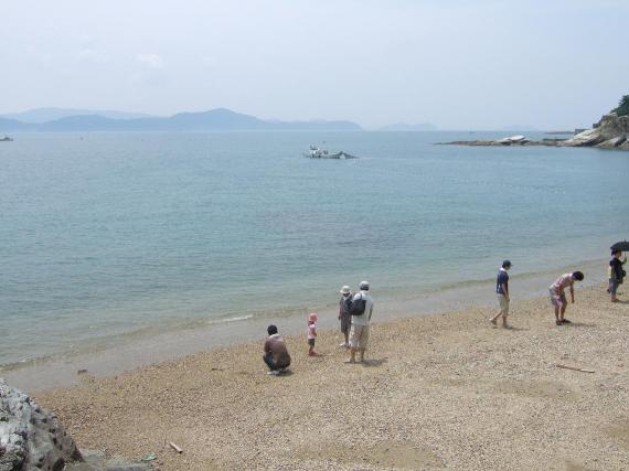 はいはいw今日も頑張って来ましたw(。ゝ(ェ)・)b 今日はレクリエーションですw会社の^^ (〃゜ o ゜〃) ハッ!! σ(・ω・。)の所ではありませんよ^^;お局いませんからぁ~(○´艸`) 朝早く電車に乗って集合場所にwσ(・ω・。)ほとんど知らない方ばかりなんですが向こうは ○○の奥さんって^^; 愛想笑いでその場を乗り切りバスに乗り込み 爆睡!!! 着いた所は こんな感じ(^-^)海です(笑)潮干狩りではありませんwww 男性が綱を引いているでしょ^^ そうなんです!地引網です^^ まずは集団写真って 海をバックに並んで撮ってたんですが 地元の方に「早くしないと 魚が死んじゃうぞー」と言われ・・・子ども達を中心に引っ張りましたwアハハハハハハハハハ^^;真剣さがないですね(○´艸`) 引き上げたら魚がいるって分かり子ども達は興味津津何が入っているのかわかりませんεミ(ο_ _)ο ドテッ… 入れ物に入れられて ご対面w(。ゝ(ェ)・)bこんなに捕れる訳ないって程いました(爆) お昼はこのお魚でバーベキューwwwですがあまりにも暑いのでテントの中のこもってました^^ 今日はお天気は良かったんですがかすんでて・・・対岸に見えてるのは和歌山マリーナシティーです^^去年のGWに行った所w覚えてますか? うっすらと観覧車も見えてました^^ んで待っていると地元の方がさばいてくれましたwカンパチのお刺身美味しかったですよ(○´艸`)何度もおかわりしましたタコも生で食べましたが・・・吸盤がくっついて口の中が面白い感じでしたw しかし・・・疲れました┐(´-`)┌ よその子がウニ踏んで足を痛がり毛抜きを持っていたσ(・ω・。)取るのをお手伝いしてて食べる時間がなかったり 会社の方との社交辞令・・・ 暑さも手伝ってまたもや疲れ倍増っす ホントはねイロイロと面白ネタもあったんですが何て書けばいいのか整理がつきませんですのよ^^; まぁ~ネタがなくなったらボチボチ書きますわw 疲れて帰って来てからもひと波乱ふた波乱ありまして・・・ やっと長い1日が終わりました~~~ 今日の所は楽しかった事だけを書いて終了w(。ゝ(ェ)・)b