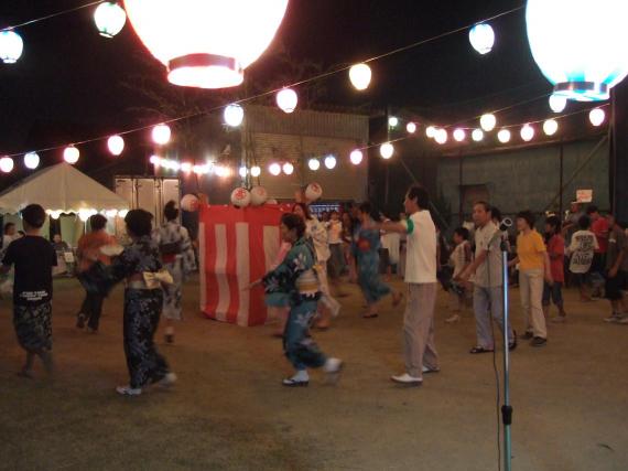 あれから・・・もう1週間経ったんですね 今でもあの時の事を思い出すと疲れがどーーーっと出ます(爆) そう子ども会の盆踊りでした 朝6時に集合し会場の準備から始まりました やぐらを組んで近くの遊技台にブルーシート掛けて遊ばないようにして大型の冷蔵庫に飲み物入れてテント立てて受付や来賓の席を作り会場設定して・・・ お昼御飯も慌ててかき込み浴衣に着替えて夕方・・・ もうこの時点で疲れのピークでしたヤレヤレ┐(´-`)┌ 実はこの盆踊り恐ろしい事が待っているんです それは・・・ 役員(女性)は曲が流れている間踊り続けなきゃならないんです夕飯も食べる時間なし(TT0TT9) 当日は夕立があって開催をちょっと遅らせたのですが盆踊りをする時間は一緒でした(ノ_・。) 曲は2曲なので少ないんですが生演奏で生歌なので1曲が長いんです^^;アドリブで歌うんだもんw思わず笑うような歌詞もありました 子どもに聞かせてもいいの? って感じ^^; 時間にして4時間・・・踊りっぱなしです.......(;__)/| ずぅぅぅぅん 途中水分補給しないと倒れちゃうので交替で短時間の休憩をしましたが ヽ(´0`;)ノ疲れた~ まぁ~見てると楽しそうに見えるね^^; 4時間も踊ってると筋肉痛です{{寒{(+ω+)}寒}} 踊った後は周囲のお店から戴いた商品の抽選会 σ(・ω・。)?当たりましたw12等で・・・これこれw何だか造花みたいな感じでしょ 当たっただけいっかw 抽選会も終わって会場の後片付けを軽く済ませて集会場に集まったのが12時前・・・ これからが大変なんです ご祝儀の確認と金額の合計確認などなど・・・残務整理が残ってますwww 子ども達?金魚すくいや当て物や焼きそばなどをして時間潰してました(笑) んで金魚・・・ 18匹お持ち帰りwww この時点で家の金魚は21匹になっていたんですが今日の時点では8匹ですεミ(ο_ _)ο ドテッ… 翌日の日曜日は朝7時から後片付け・・・ お昼までかかっちゃいました そんなこんなで盆踊り終了しダウンしたσ(・ω・。)です^^; が!!!月曜日からはキャンプに行っちゃったんです正確には連れて行かれた。。。。。 そのお話はまた明日(^-^)写真もあるよ~@ちょっとだけどね^^; これでやっと1つ書けました(爆)