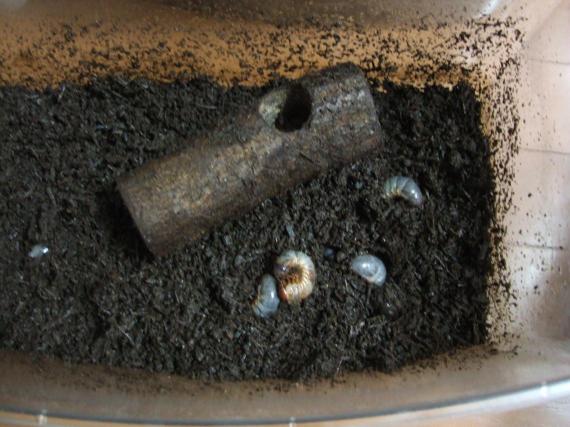 昨日のカビルンルンでちょっと気分がすぐれないσ(・ω・。)・・・ (〃゜ o ゜〃) ハッ!! お腹こわしたとかではないですよ^^;変な物食べたって感じでブルー・・・ もう\(^∀\)その話しは(/∀^)/置いといて 暑い真夏の日にうちのカブ君&カブちゃんは天国に逝きました 9月まで生きてるかなぁ~?って思っていたのに早すぎるって感じでしたが・・・ 卵が30個以上あったし(○´艸`) って思ってましたが幼ちゃんになっていたのは 8匹でしたεミ(ο_ _)ο ドテッ… では・・・ご紹介いたします^^ ちょっとボケ気味???( ゜(エ)゜;) アセアセ では アップで!!!アハハハハハハハハ^^;グロテスクでんなぁ~ 9月初めだと言うのにこんなに大きくなってるんだけど・・・いいの? 10か月は幼ちゃんのお世話で2か月のみ成虫のお世話 まぁ~静かな分幼ちゃんの方がいいんだけどね(○´艸`) これからは幼ちゃんが時々登場いたします(^-^) \(・_・ )( ・_・)/よろしく♪