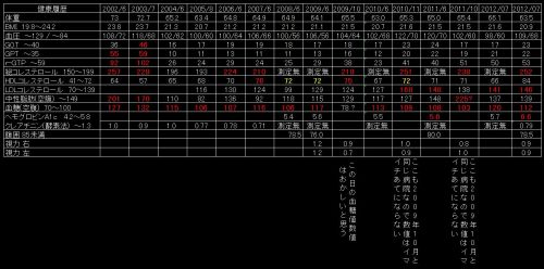 あらら、総コレステロールがレッドゾーンだ。LDLコレステロールも。血糖値も。ヘモグロビンA1Cもだ。検査する前に食べてたもんね。こんなもんか。気になってた眼圧は右が16.30 左が14.70で上限の21.00を下回ってるから良しとしよう。肺活量?は84.6%でギリギリなのかしら。心電図はT波の平低化だって、早い話が心臓がヘタってきてるってことかな?良くわかんないや。あの医者は何の説明もしなかったし、オイラの持病の名前も知らないジジイ医者だったし。次回の検査にはバカ食いしないで臨もうと思う(^^ゞ
