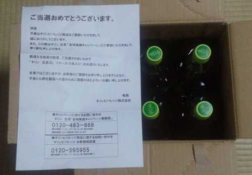 宅急便が届いた。株主優待でもないよねぇ、なんだろう?キリンの生茶2Lが6本当たった。またまたキリンだ。サントリーは当たらないけどキリンは意外と当たる。そういえばコカ・コーラなんてたしか40連敗ぐらいしてる。当たる感じがしないインチキっぽい。パナも何度も応募しているのにここも当たる感じがしない。オトリとか釣りなのかと思ってしまう。お願いだから当てて(^.^)/~~~くださいな。6/13 お題訂正(^^ゞ