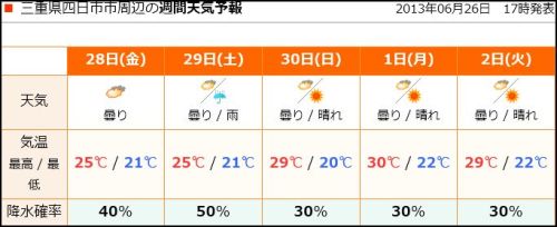 なんだか近畿地方は大雨みたい。行くなら28日出発して宿に泊まり、29日に針に集合して南下、潮岬でキャンプらしい。そして30日は北上して針で解散するらしい。オイラは伊賀あたりで宿に泊まる予定。強者どもは29日夜中に走って針に集合して30日に帰宅という超ハードスケジュールらしい。そんなことしたらオイラは持病が間違いなく出てツーリングどころではない。だから宿に前泊、後泊するのだが。28日と29日の四日市とか奈良の降水確率はほぼ50%もある。ということは間違いなく雨なんだろう。路面濡れてたら怖いねぇ。ジイジには無理ね。残念だけど諦めようかな。チャンスはまたあるでしょうから。焦るこたぁないや。無理は禁物ね。