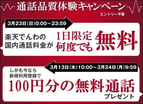 Lineの格安電話アプリが発表されたけどいつになったら使えるようになるのやら。ということでとりあえず楽天電話を登録してインストールした。基本料金もなにもないので使わなければ料金はいっさいかからないようなのでインストールしても困ることはない。早くLineが電話アプリを使えるようにしてくれればいいのに。Lineが使えるようになって調子良ければ楽天電話はポイだ楽天電話を使わない無料通話リストはノジマで一緒にiPhone5Sに乗り換えたYO君だけだ。奥さんには楽天電話、娘達はSBだけどiPhoneなのでフェイスタイムかLineの通話で話せばタダだ。あとはiPhoneの人だとわかればフェイスタイム、わからなければ楽天電話を使えばいいのかな。3月23日は無料通話キャンペーンの日らしい。タダで使えるみたい。どこへ電話しようかしら。