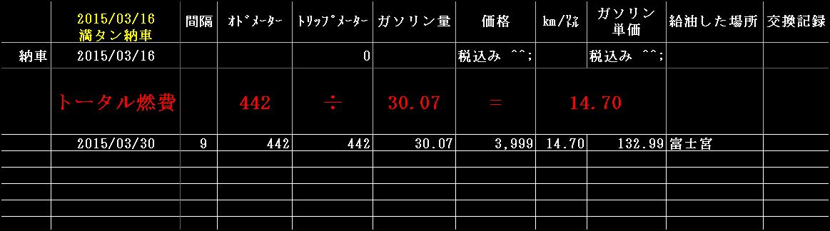 実燃費でリッター15キロ走ればいいかなと思ってる。なんせ重い軽自動車だ。さてさて初の満タン。こんなものだろう。重さを考慮したらこんなものだろう。燃費は合格ラインだと思う。走りこめばもう少しよくなるかな。市内の坂道をチョイノリしてたら12Km/Lも割るだろうな。いいんじゃないの。