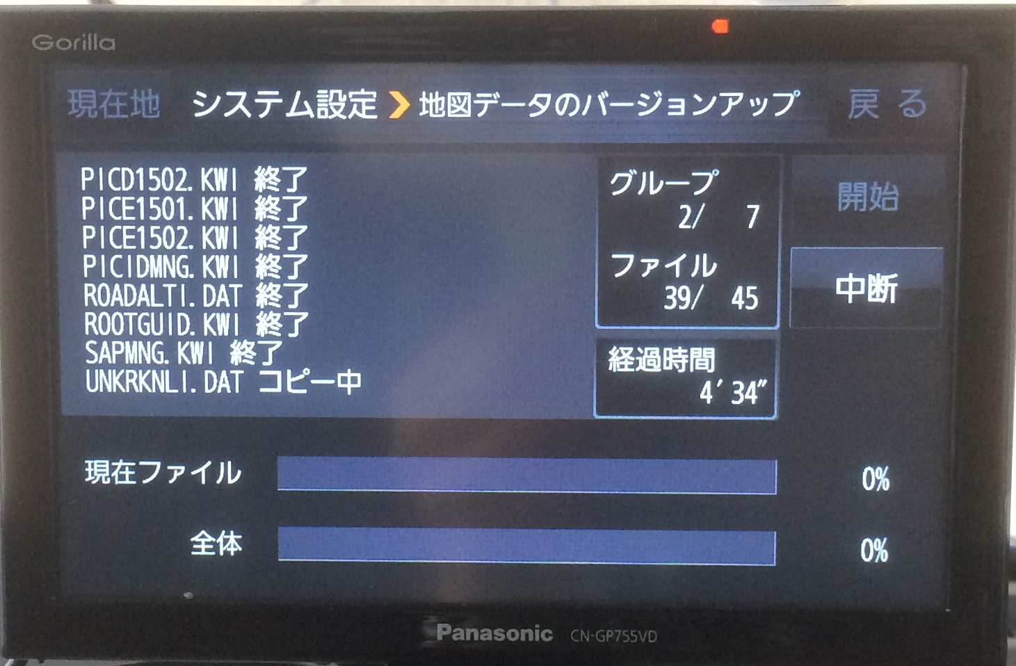 無料更新出来るのにしてなかった。さっそくトライ。というか、福井に行く前にやっとけってか手順は710ゴリラと同じようなものだ。パソコンでダウンロードしてSDに入れてゴリラでバージョンアップすればOK。電源切って10秒経ってオンにして無事にナビが開始されたらいい・・・・・OKだった
