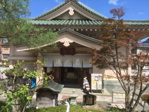 山中温泉 総湯 は期待度が大。入ったのは新築された菊の湯、602湯目。高温で長く入っていられない。風情がある建物だけどかなり立派すぎ。共同浴場の規模を超えている。街のシンボルとしてだからしょうがないか。清潔で気持ちはいいがどうやら循環ろ過消毒しているらしい。もったいない。ザブザブかけ流し風なんだけどなんでかな。もう少し温いと気持ちいいんだけど。でもまぁ満足ってことで。駐車場の裏手に無料があったし12時で時計が簡単だけど仕掛け時計で音が出た。せっかくなので橋めぐり。