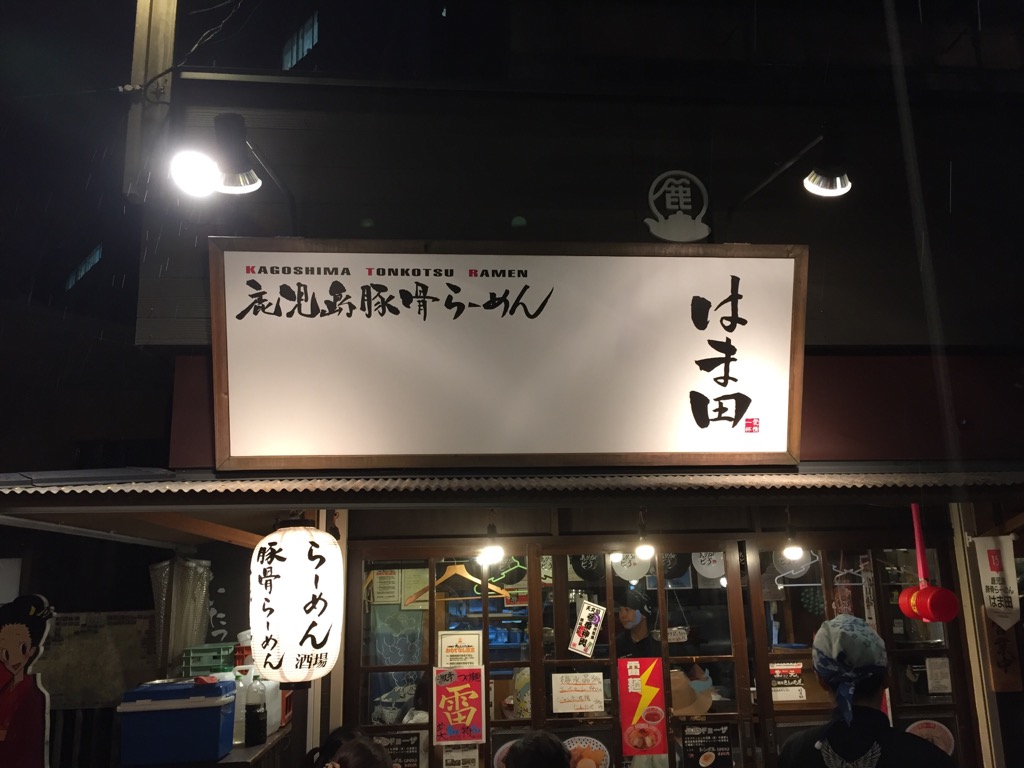 宿に戻って一服してからオイラだけすぐ隣の屋台村に行く。食べたかった店はお客一杯で諦めて奥に進んでいくとはま田というラーメン屋があった。メニューを見ていたらオネエチャンに言い包められて食べることにした食べたのはさつまブラック 780円。安いねぇ。最初はそのまま食べて途中から黒い焦がしニンニクを混ぜて食べると2度の味が楽しめますよ と。なるほど、途中から混ぜて食べたらうまいや。うまいね~。ホテルに戻ったらニンニク臭いと奥さんに大ヒンシュク。食っちまったものはしょうがないじゃんよ~く眠れた。