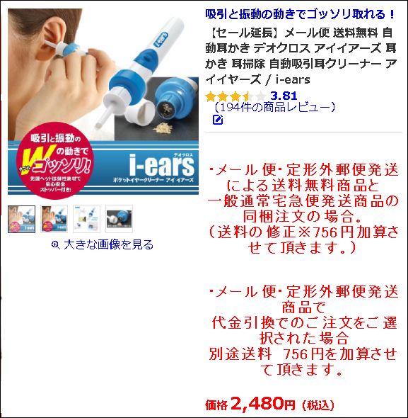 面白そうだから。ケースがなかなか良い。使ってみると・・・おおっ、意外と取れる。いいねえ。カサカサ耳垢の人にはいい見たい。オイラにはピッタリだ