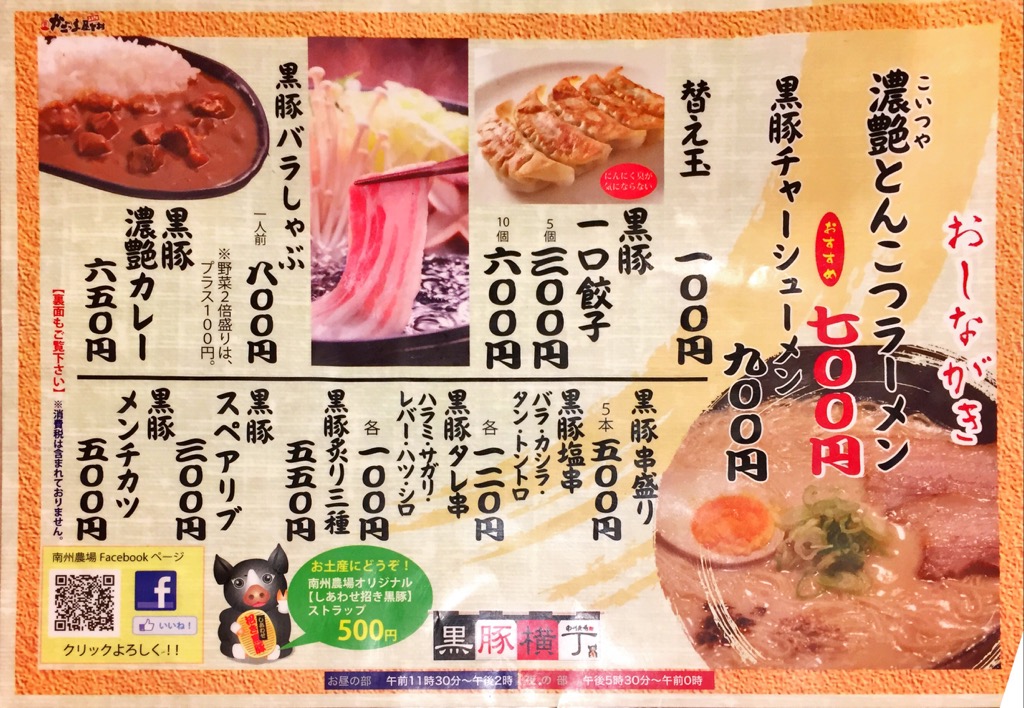 今夜は25日に調べたステーキ店に行く予定だった。しかし歩き疲れてかったるい。オイラは隣のラーメンでいいなと言うと ラッキー、安く済むからそうしましょう となって再びラーメン。奥さんはイマイチ食欲がなかったのでラーメンでいいと思ってたらしい。オイラも今日は朝、昼、つまみ食いとやってきてあまり食欲がないので丁度いいや。ホテルのすぐ近くの屋台村に行く。満席で食べそこなった黒豚横丁 by南州農場に行く。オイラは黒豚チューシューメン 900円、奥さんは濃艶とんこつラーメン 700円。安いねぇ。餃子は小さいねぇ、CP悪いや。ラーメンは美味かった、スープまで完食。替え玉なしで丁度良かった。デブになるなぁ。ホテルに戻ろうとしたら雨。でも近いので楽勝。明日も傘要らずで済むかしら。