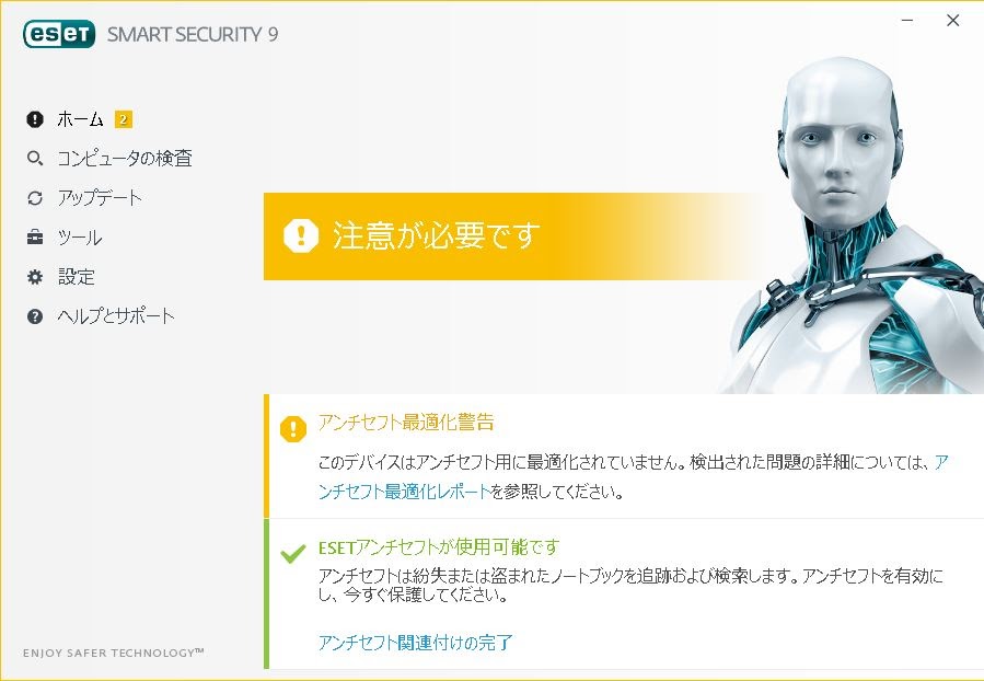 問い合わせしたら回答もらったけど、わかんないからほったらかしにした平素はESET製品をご愛顧いただき、誠にありがとうございます。ESETサポートセンターのFと申します。ご連絡が遅くなり、申し訳ございません。また、ESET製品のご利用に際し、大変ご不便をお掛けしております事をお詫び申し上げます。M様よりお問い合せいただいた件について、ご案内いたします。「アンチセフト最適化警告」につきましては、アンチセフト機能のご利用に際し、何らかの設定がされていない場合に表示されます。 ◇ご参考:「アンチセフト最適化警告」または「盗難対策監査警告」と表示される◇ http://eset-support.canon-its.jp/faq/show/286?site_domain=privateお手数をおかけいたしますが、アンチセフト機能の専用サイトにて未設定の箇所の設定を行っていただきますようお願いいたします。 ◆ESETアンチセフト専用Webサイト◆ https://anti-theft.eset.com/ ※サインイン用のアカウントについては、my.eset.comアカウントに登録した お客様任意のメールアドレスとパスワードです。 ※サインイン後、ご利用のデバイス(パソコン)を選択し、 の項目をご覧ください。案内されたところは見たけどよくわかんないから問い合わせしたんだけど、同じ回答もらってもアホには理解できませ~んパソコン紛失しなけりゃいいんだなこのままでいいや。ずっとわかんないまま3年経ったら他のものにしよう。