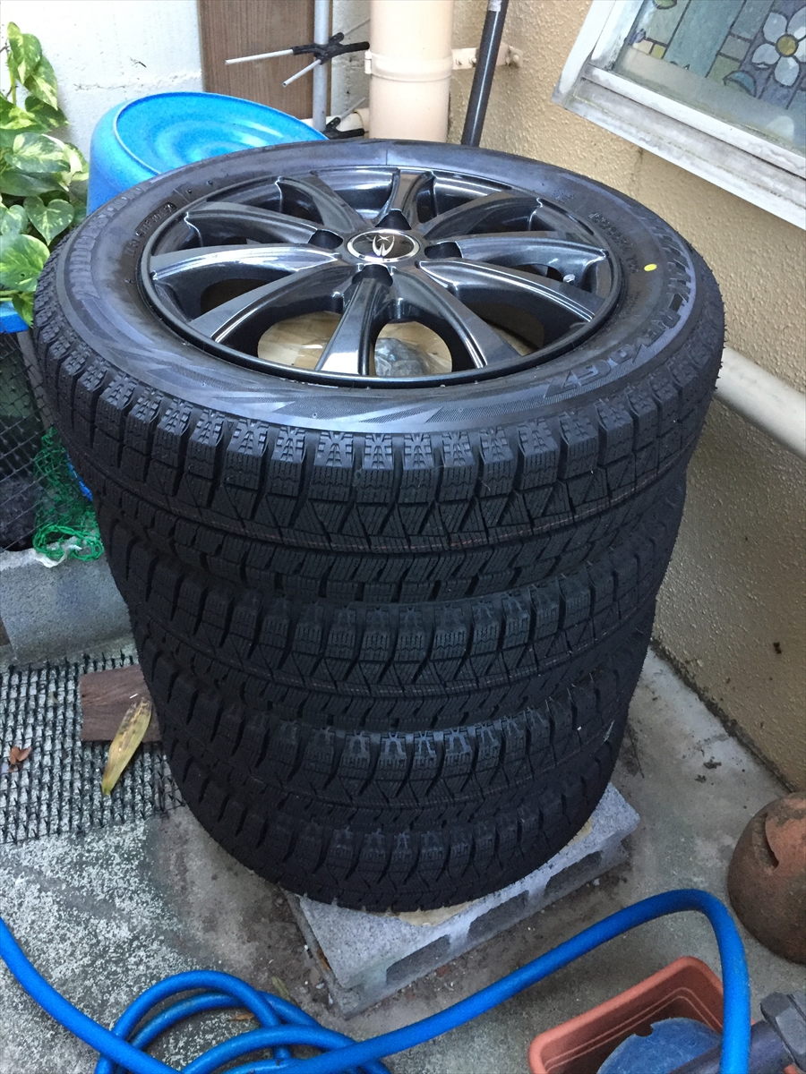 ちょっと眩暈がするけど。スタッドレスタイヤに換えてきた。油圧ジャッキ借りたのでちょっと楽ちん。トルクレンチで締めて、エアーは2.0だったので正規の2.2にしようと思ったけど最初は膨張すると思うので2.4にした。100キロも走ったら2.2にしようと思う。夏タイヤはとりあえず洗って干す。とはいっても今日は雨らしい。ほったらかしでいいや。乾いたらワックス塗って保管だな。ワックスで保管でいいのかなぁ?マイッカ。