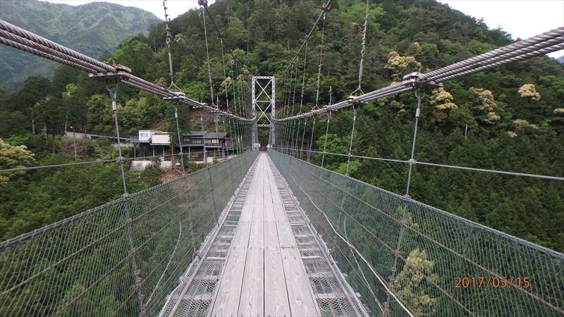 谷瀬の吊り橋に行く。夕方だったのでほぼ貸し切り状態(^^♪女の子二人居たけど半分も進めず。オイラはこういうのは大好きなので渡り切った。