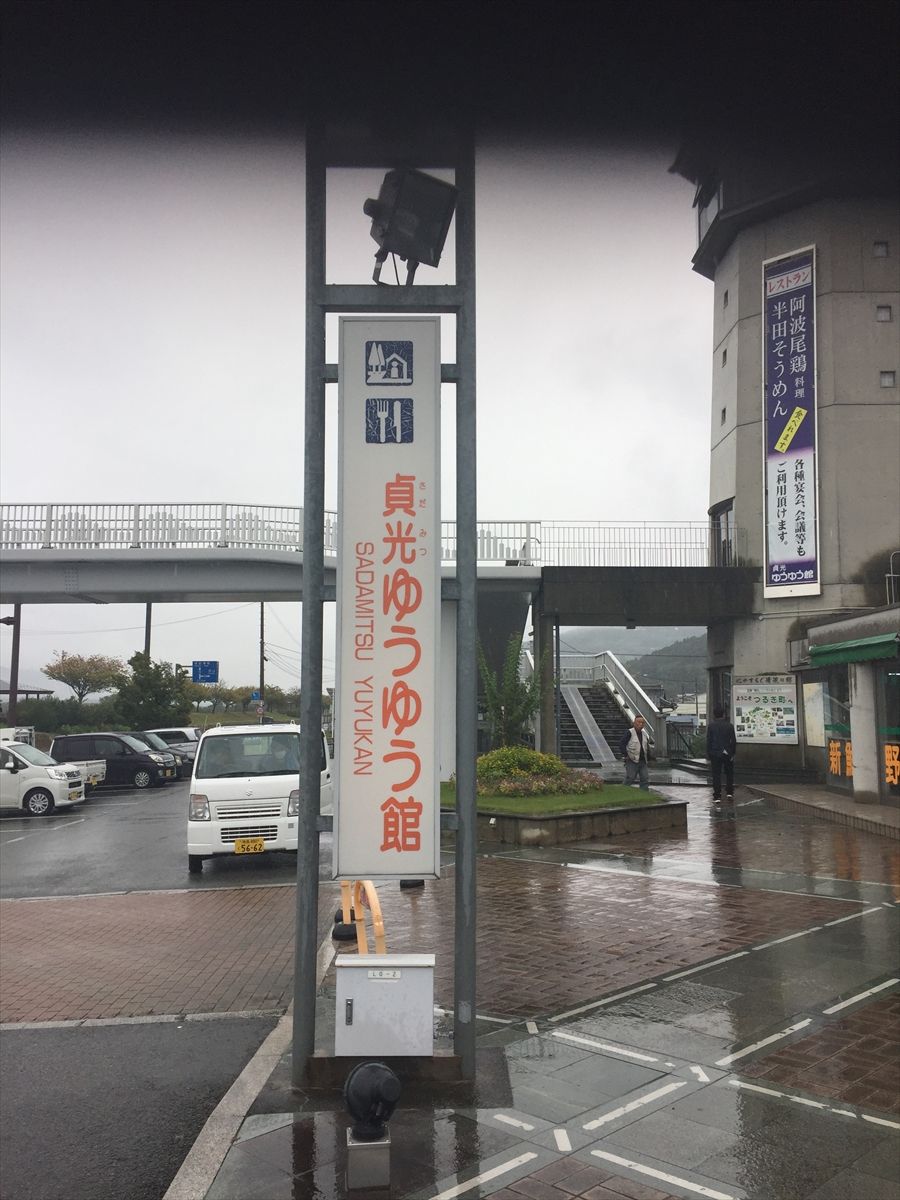 大型台風接近中で雨と風が強くなってきた。もういいか、帰ろう。知らない土地で災害に合ったら怖い。でもドライブは適当にしていこう。国道を走ってたら落石があったみたいで道路に石というか岩が落ちたところがあった。ちっょと怖いぞ。マジで帰ろうと思った。土柱の近くまで来たらナビに温泉マークが出てきた。土柱は昔、見学したことがある。たしか近くにうだつの名所があったんじゃないかな?うだつも見たなぁ。眠いから温泉に入ってNBOX+カスタムで寝ることにした。土柱の湯。泉質は・・・・忘れたなんだったっけ?それだけ特徴がなかったってことかな。景色はいいらしい。生憎の雨でわかんなかったけど。景色眺めて入る温泉かな?けっこう地元の人が来ている感じがした。687湯目。2017/11/14判明 688湯目('◇')ゞ風呂から出てすぐにNBOX+カスタムに戻り一番遠いPに移動して寝た。2時間ぐらい寝たみたい。このあと徳島に向かう。ラーメン食べて行こうと思ったが帰宅ラッシュのタイミングで道路が混んできた。あとちょっとというところで渋滞がイヤになって帰宅することにした。高速に乗ってスタコラ逃げよう。やたら眠くて仮眠してばっかり。