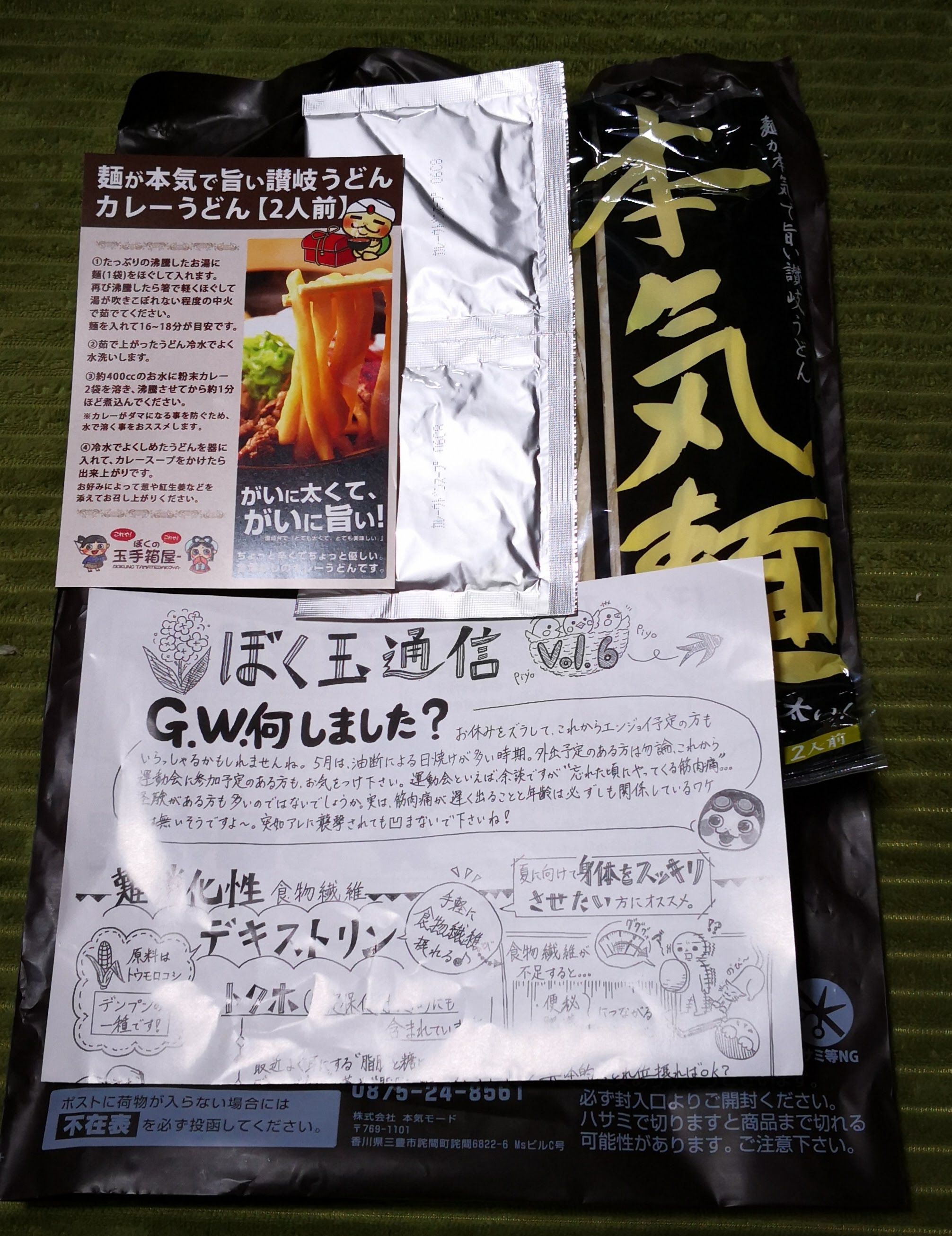 ヤマダモール店からポイントのお知らせ。失効するなら何か買おう。で、うどんにした。ぼくの玉手箱屋ー。どうせならカレーうどんだな。1.【ポイントメルマガ】讃岐カレーうどん2人前【MM】 価格:¥295 x 数量:1 = 合計:¥295【お買上金額】 商品金額合計:¥295 送料:¥0 手数料:¥0 ポイント使用(値引き):156ポイント 注文金額合計:¥139 ポイント発生:3ポイント茹で時間は16~18分だと。時間かかるなぁ。すぐに食べてしまおう