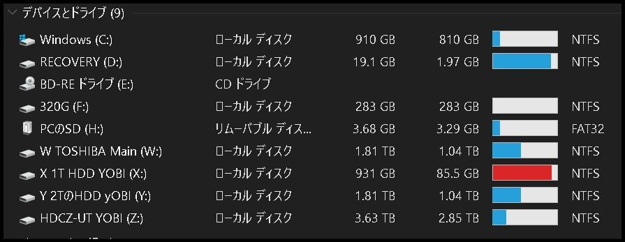 4TのHDDは以前に購入しておいた。1Tのバックアップ用HDDがそろそろ満杯になってきたので隠居させて4TのHDDを使うことにした。万一ドライブレターが変わるとバックアップソフトを使ったときに不具合が出るのでラストのZに固定した。さっそくバックアップさせた。さすが4T、スカスカだ(^^♪