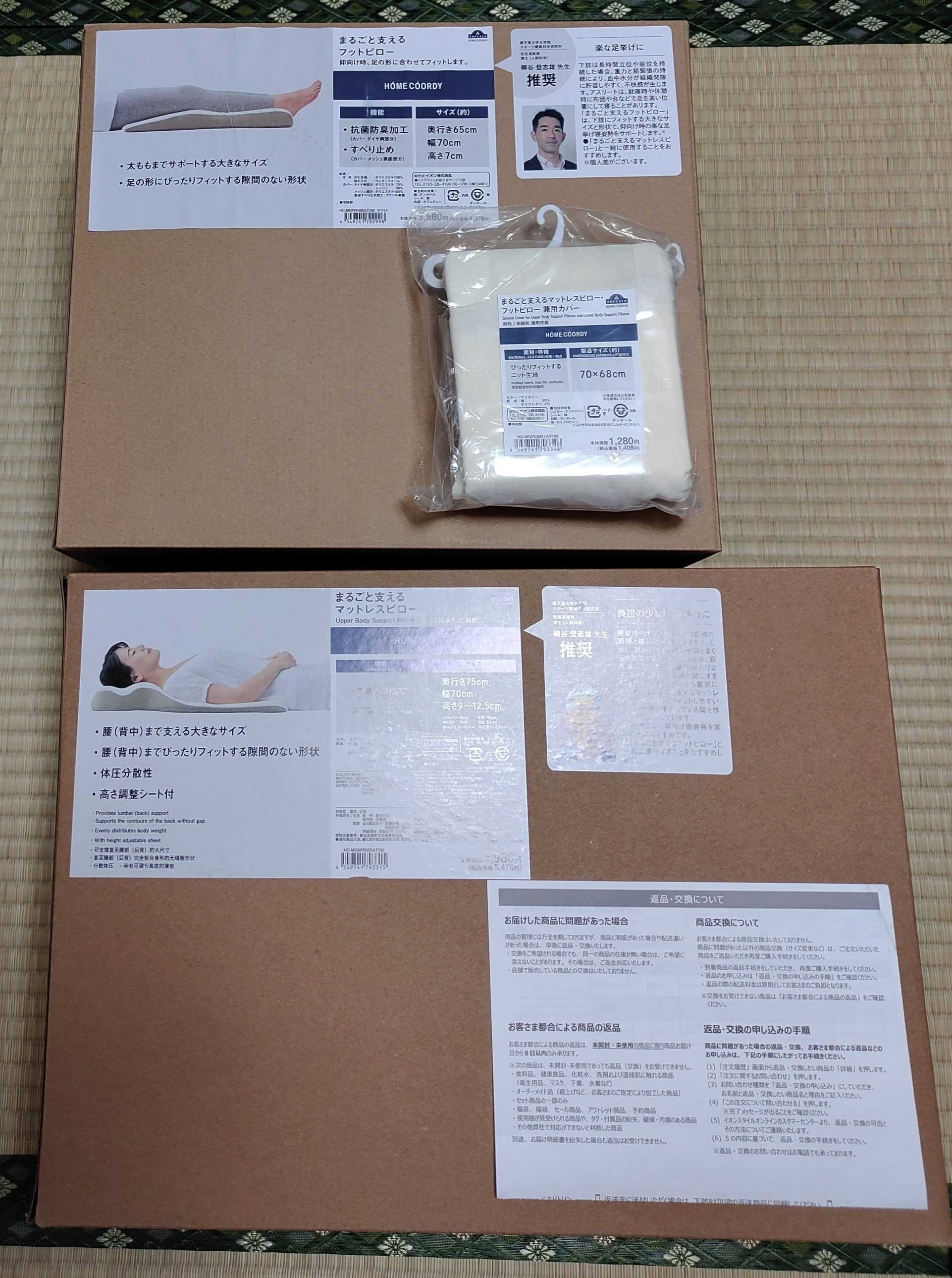 フットピローとマットレスピローが昨夜届いたオイラは車の運転スタイルだと全く腰痛が出ないしかし寝ると出るなので薄い座布団を膝の下に入れて寝ると楽だ車中泊では敢えてマットの下に敷くボードはまっ平にせず、ちょうど真ん中が少し下がるようにセットして寝てるので腰痛はほぼ出ないなので何日でも車中泊できるTVCM見て即注文してみた合うか合わないか、使ってみなきゃわからんから一晩だけどなかなかいい特にフットピローがいい楽だ一晩では答えは出ないが少なくともフットピローは良さそうだ