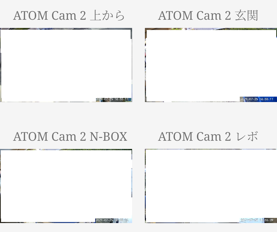 2個使ってて良すぎなので2個追加したATOM Cam 2は最高のCPだと思うこれで我が家は計7台のカメラで監視体制となった悪党は近づかないでくれ~