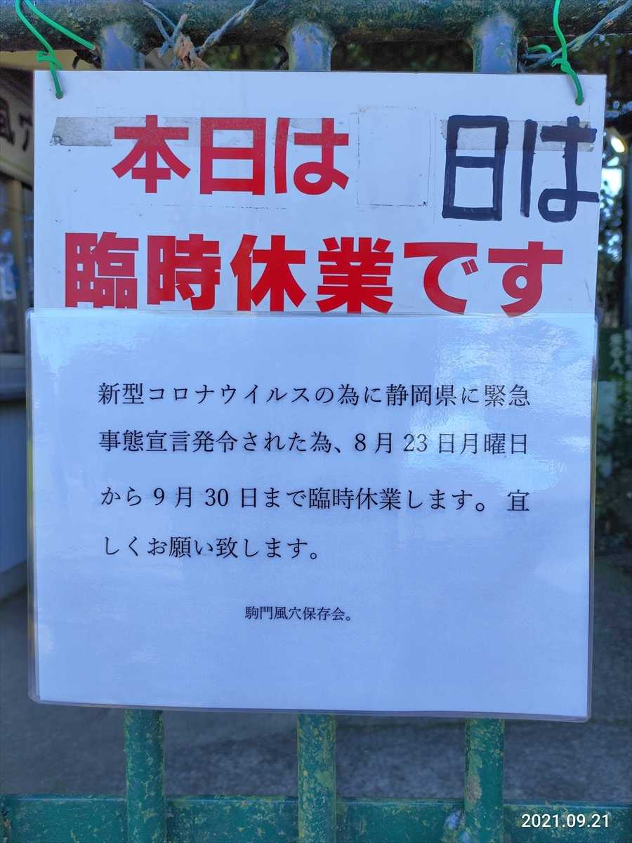 9月になれば通行止めが解除されてるだろうと出かけた天気がいいので眺めに期待だまずは駒門風穴に寄ってみたいつでも行けるところは逆に行ったことがないで、下調べしてないからいつものパターンで臨時休業こんなもんさ~くっそ~気を取り直して次だ神場山神社に立ち寄った通称はさみ神社はさみで病気・悪縁を断ち切り!?御殿場「神場山神社」ご神木は“よろこぶの木”次は富士山の富士宮口五合目高度が上がるにつれどんどん気温が下がっていき17度になった涼しい三島が24度だった帰りは29度になってた写真撮ってたら外人が超軽装で小走りに駆け上がっていった半そで、半ズボン、ちっちゃなウエストポーチという身なりだ駐車場で登山から戻ってきた人と話をしたら往復12時間で日帰りしてきたと凄いね~さっきの外人の話をしたら ああいうのがなんかあったらすごい迷惑なんだと言ってただよな~なんかあったら当人はなんにも出来ないんだから自分は万一を考えてリュックにいろんなものを詰め込んで重たい思いをして登山してるのにああいうアホがあとを絶たないらしいどこにも非常識がいるもんだ景色眺めて写真撮って、そして下っていく水ヶ塚公園 駐車場に立ち寄る夏休みは凄く混んでたけどもうガラガラだここでコンビニで買っておいたサンドイッチとおにぎりとお茶でランチしてひと休みさぁて帰ろう今日も奥さんのお迎えが14時半なのでそれまでに帰らねばナビで計算させたら13時半が到着時間だ余裕があるからひとつどこかに寄っていこう山神社というのがあったので寄っていく永塚の大杉がある大きいといえば大きいほうだけど知名度はないようだ帰宅は14時ごろ間に合ったハイタッチ!drive2021年09月21日 07:33 - 13:57、163.58 Km 6 時間 23 分、2ハイタッチ、バッジ18個を獲得、テリトリーポイント120pt.を獲得