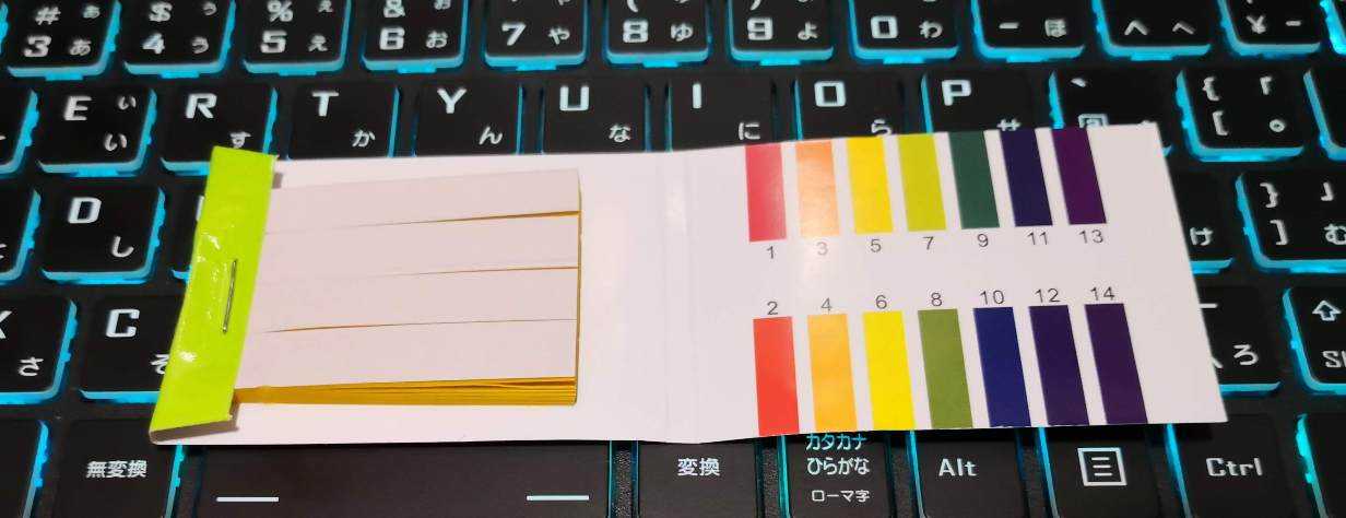 5か所の水槽の水質を確認しようと買ってみた 万能pH試験紙 1セット72枚入り(pH:1-14)酸性、中性、アルカリ性を1枚で判別可能 リトマス試験紙より便利安いし、お試しで1底砂が大磯2底砂なしのグリーンウオーター3底砂なしだが大磯メインの上部ろ過器4赤玉土の底砂さてさて多少なりとは数値は違うはずだところがまったく同じ、少しも色の変化はない乾くことのないビショビショで並べたけどまったく変化なしこういうのを インチキ商品 と呼ぶのだろうかいい経験をさせてもらったなぁ